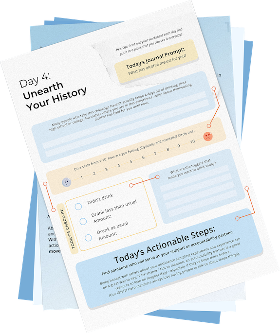 With this simple 7-day system, we provide you with specific exercises, journal prompts, and actionable tips so you can better understand exactly why you drink and how you can move forward from here.